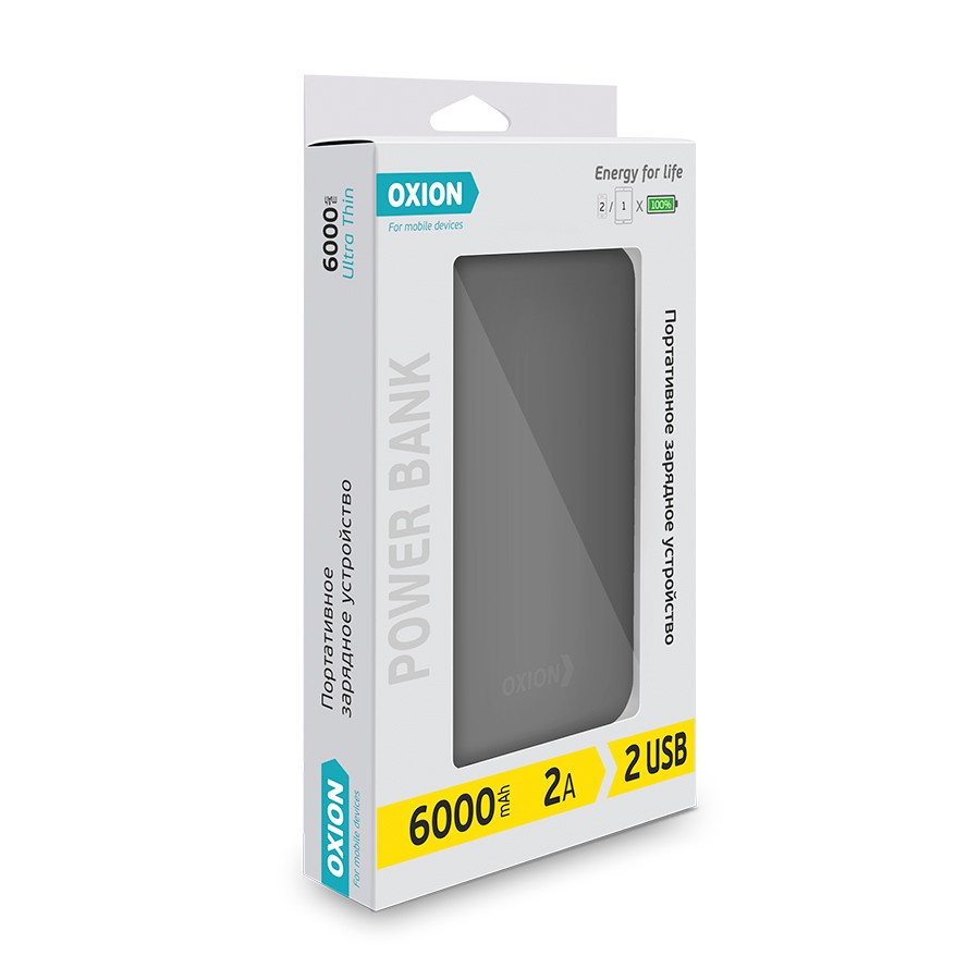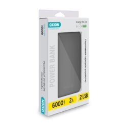 Внешний аккумулятор Ultra Thin 6000 Li-pol 6000mAh 2USB 1A-2A Li-pol черный пластик Soft-Touch покр. индикатор Oxion OPB-0608BK