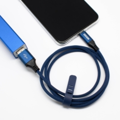 Кабель для быстрой зарядки телефона USB2.0(M) – Type-C(M) 1м синий в оплётке со стяжкой Oxion OX-DCC335BL